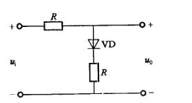 图示电路中,设VD为理想二极管,输入电压ui按正弦规律变化,则在输入电压的负半周,输出电压为:
