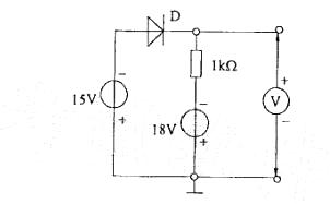 在图示的二极管电路中,设二极管D是理想的(正向电压为0V,反向电流为0 A),且电压表内阻为无限大,则电压表的读数为: