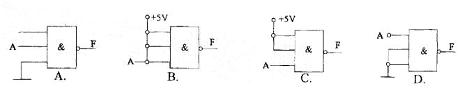 现有一个三输入端与非门,需要把它用作反相器(非门),请问图示电路中哪种接法正确?
