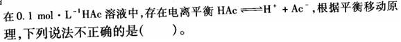 A加入浓HAc,由于增加反应物浓度,平衡向右移动,结果HAc解离度增大