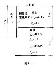 某泥浆护壁灌注桩桩径800mm,桩长24m,采用桩端桩侧联合后注浆,桩侧注浆断面位于桩顶下12m,桩周土性及后注浆桩侧阻力与桩端阻力增强系数如图4-3所示。按《建筑桩基技术规范》(JGJ 94-2008),估算的单桩极限承载力最接近于下列何项数值? ( )