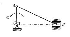 图示曲柄连杆机构中,OA=r,AB=2r,OA、AB及滑块B质量均为m,曲柄以ω的角速度绕O轴转动,则此时系统的动能为:
