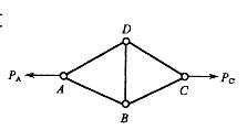 五根等长的细直杆铰结成图示杆系结构,各杆重力不计。若PA=PC=P,且垂直BD。则杆BD内力SBD为:![]()