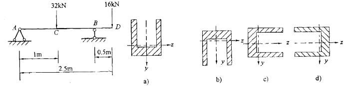 —铸铁梁如图所示,已知抗拉的许用应力[σt]c],则该梁截面的摆放方式应如何图所示?![]()