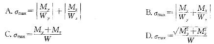 矩形截面梁在形心主惯性平面(xy平面、xz平面)内分别发生平面弯曲,若梁中某截面上的弯矩分别为Mx和My,则该截面上的最大正应力为:![]()