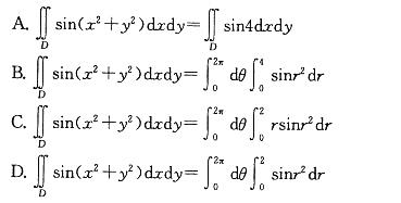 设D为圆域x2+y2≤4,则下列式子中哪一式是正确的?