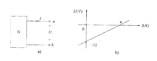 图示电路中,N为含源线性电阻网络,其端口伏安特性曲线如图b)所示,其戴维南等效电路参数应为: