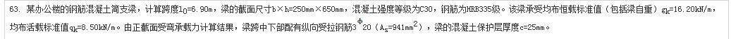 (1)该梁跨中截面在荷载效应的标准组合作用下,纵向受拉钢筋的应力σsk最接近于( )N/mm2。