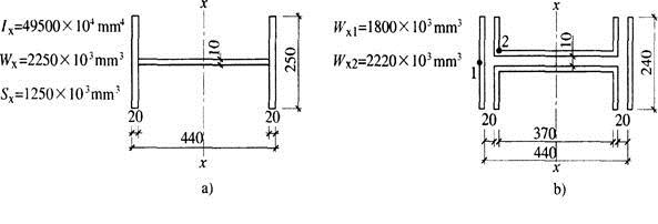 某车间起重机梁端部车挡采用焊接工字形截面,钢材采用Q235B钢,车挡截面特性如图所示。作用于车挡上的起重机水平冲击力设计值为H=201.8kN,作用点距车挡底部的高度为1.37m。[2011年真题]