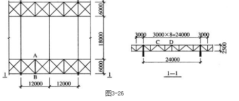 某厂房屋面上弦平面布置如图3-26所示,钢材采用Q235,焊条采用E43型。