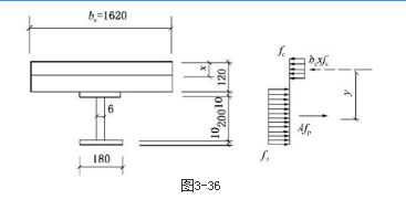 有一钢与混凝土组合梁,截面如图3-36所示,混凝土板强度等级为C20,fc=9.6N/mm2,bc=1620mm,钢梁的钢材牌号为Q235,则此组合梁的抗弯设计值(kN·m)为( )。