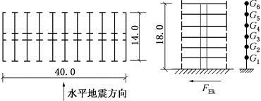 一幢6层砌体房屋,其平面及剖面图如图所示。抗震设防烈度为8度(0.2g),每层建筑结构自重标准值为16kN/m2(包括墙体及楼面结构自重),楼面活荷载标准值为2.0kN/m2,屋面活荷载标准值为0.5kN/m2。采用底部剪力法计算水平地震作用,由此可算得该房屋的底部总水平地震作用标准值FEk(kN)与下列何项数值最为接近?(  )