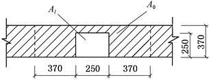 一钢筋混凝土柱截面尺寸为250mm×250mm,支承在370mm宽的条形砖基础上,作用位置如图所示。砖基础用MU10烧结普通砖和M5水泥砂浆砌筑,柱传至基础上的荷载设计值为150kN。要求确定柱下基础砌体的局部受压承载力关系式中右端项γfAl最接近于( )kN。