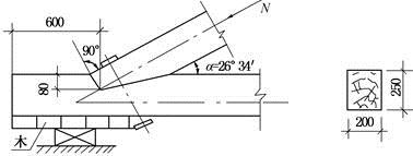 如图所示,设计使用年限为50年的方木屋架端节点,上弦杆轴力设计值(基本组合)N=-128.8kN。该屋架用水曲柳制作。当用木材单齿连接受剪承载力公式