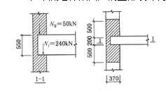 某窗间墙尺寸为1200mm×370mm,如图4-2所示,采用MU10砖和M2.5的混合砂浆砌筑。已知大梁截面尺寸为b×h=200mm×550mm,跨度5m,支承长度a=240mm,梁端荷载设计值产生的支承压力付Nl=240kN,梁底墙体截面处的上部设计荷载为N0=50kN。