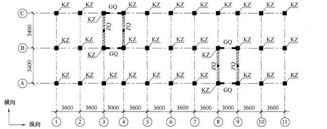 2.假定作用于底层顶标高处的横向地震剪力设计值V=1000kN。试问,作用于每个框架柱KZ上的地震剪力设计值V(kN),与下列何项数值最为接近?( )