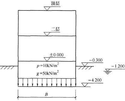 B,抗浮设计水位为-1.200m,基础底面标高为-4.200m。传至基础底面的全部恒荷载标准值为g=50kN/m2,全部活荷载标准值p=10kN/m2;结构重要性系数γ0=0.9。试问,在抗漂浮验算中,漂浮荷载效应值γ0S1与抗漂浮荷载效应S2之比,与下列哪组数值最为接近?( )[2013年真题]