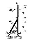 已知杆AB和杆CD的自重不计,且在C处光滑接触,若作用在杆AB上的力偶的矩为m1,则欲使系统保持平衡,作用在CD杆上的力偶矩m2,转向如图所示,其矩的大小为:![]()