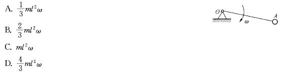 均质细直杆OA长为l,质量为m,A端固结一质量为m的小球(不计尺寸),如图所示。当OA杆以匀角速度绕O轴转动时,该系统对O轴的动量矩为:![]()