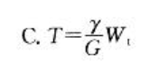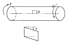 图示圆轴抗扭截面模量为Wt,剪切模量为G,扭转变形后,圆轴表面A点处截取的单元体互相垂直的相邻边线改变了y角,如图所示。圆轴承受的扭矩T为: