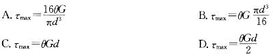 圆轴直径为d,切变模量为G,在外力作用下发生扭转变形,现测得单位长度扭转角为θ,圆轴的最大切应力是:![]()