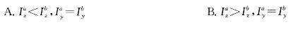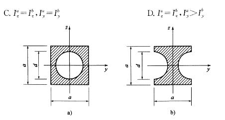 面积相等的两个图形分别如图a)和图b)所示。它们对对称轴y、z轴的惯性矩之间关系为:![]()