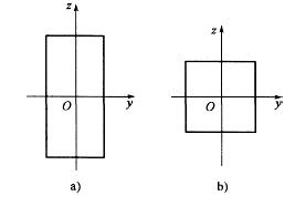 图示的矩形截面和正方形截面具有相同的面积。设它们对对称轴y的