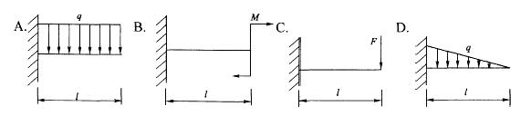 图示四个悬臂梁中挠曲线是圆弧的为:
