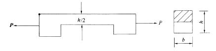 矩形截面拉杆中间开一深为h/2的缺口,与不开缺口时的拉杆相比(不计应力集中影响),杆内最大正应力是不开口时正应力的多少倍?
