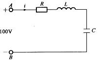 RCL串联电路如图所示,其中,R=1kΩ,L=1m H,C=1μF。如果用一个100V的直流电压加在该电路的A-B端口,则电路电流I为: