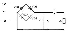 全波整流、滤波电路如图所示,如果输入信号ui =sin(ωt+30°)V,则开关S闭合前输出端有直流电压u0为: