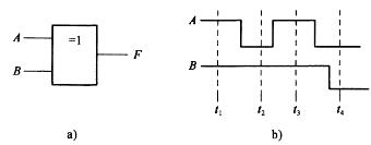 逻辑图和输入 A、B的波形如图所示,分析当输出F为“1”时刻应是( )。
