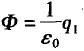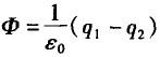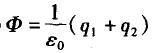 电场中有个闭合球面,球面所包围的电荷电量为+q1,球面外电荷的电量为-q2,则通过该球面的电通量Φ是( )。