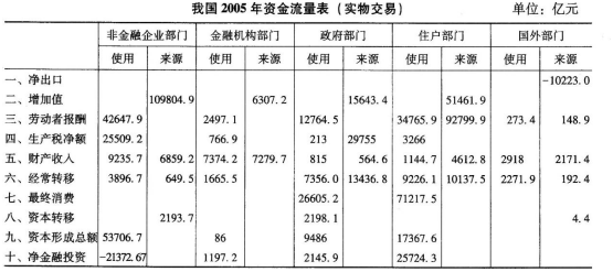 以下是我国2005年资金流量表(实物交易)部分资料,请根据这些资料对反映该年宏观经济运行的一些重要指标进行计算和分析,回答有关问题。