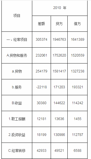 下表是 2010 年我国国际收支平衡表。(2010 年人民币对美元的平均汇价为:1 美元=6.7695元) 国际收支平衡表单位:百万美元![]()