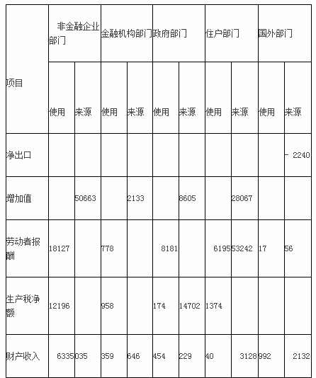 以下是2000年全国资金流量表的部分资料,请根据这些资料对反映该年宏观经济