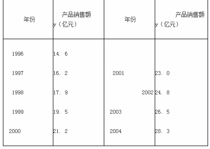 设已知某公司1996年至2004年的产品销售额资料如表6 -4所示。