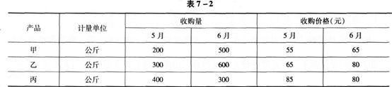 某地区三种农副产品的收购资料如表7—2所示。