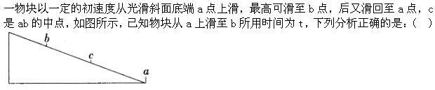 D、物块上滑通过c点时的速度大小等于整个上滑过程中平均速度的大小" /> D、物块上滑通过c点时的速度大小等于整个上滑过程中平均速度的大小" />