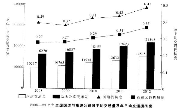 2012年全国国道网车流量较大的地区主要集中在北京、天津、上海、江苏、浙江、广东和山东,上述省市国道网的日平均交通量均超过2万辆。全国国道网日平均行驶量为244883万车公里,北京、天津、河北、山西、上海、浙江、湖北、广东的国道年平均拥挤度均超过0. 6。其中,国家高速公路日平均交通量为22181辆,日平均行驶量为148742万车公里;普通国道日平均交通量为10845辆,日平均行驶量为 111164万车公里。全国高速公路日平均交通量为21305辆,日平均行驶量为204717万车公里。(注:交通拥挤度指公路上某一路段折算交通量与适应交通量的比值,反映交通的繁忙程度。)