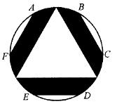 如右图所示, A、 B、 C、 D、 E、F将圆六等分。圆内接一个正三角形。已知阴影部分的面积是100平方米,则圆面积为( )。