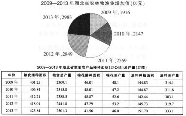 根据所给资料,下列说法正确的是:①从2009年到2012年湖北省棉花总产量虽有升有降,但总体上仍呈上升趋势②与上年相比,2012年湖北省粮食单产增加了约0.8B从2009年到2012年湖北省主要农产品种植面积均逐年递增( )