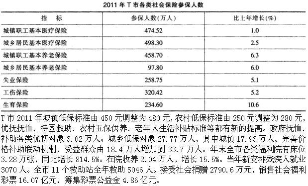 B2011年T市销售社会福利彩票的收入占三项公益总收入的比例超过75%