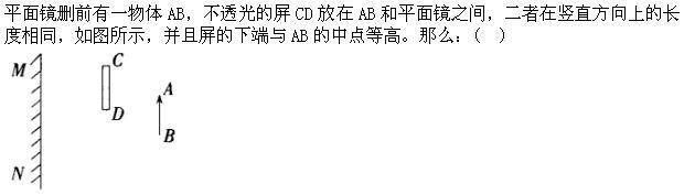 D平面镜中仍能成AB完整的虚像,但在平面镜前一定范围内才可看到