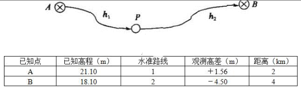 沿附合水准路线测量P点高程如下图所示,观测结果如下表。则P点高程的最或然值是( )m。