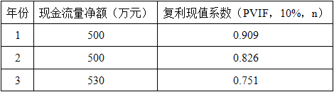 甲公司为项目运营于2009年1月1日购入一台设备,设备原值630万元,预计可使用3年,按直线法计提折旧,预计净残值30万元。该设备于购入当日投入运营。该项目投入运营后,各年的现金流量净额及复利现值系数如下表: