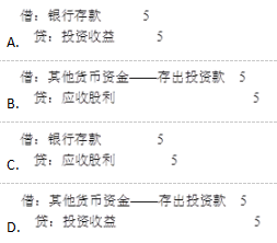 C根据资料(1)和(2),下列各项中,3月20日甲公司收到乙上市公司发放的现金股利的会计处理正确的是()。