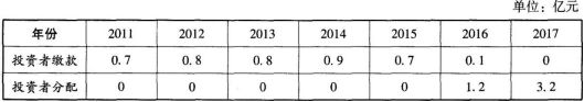 假设某基金募集规模为4亿元,2011年成立,截至2017年末的资产净值为12.4亿元,各年度投资者缴款和分配金额如下表所示:
