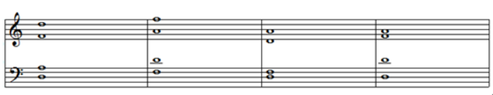 下列谱例中的四部和声,属于开放排列的有几组( )。