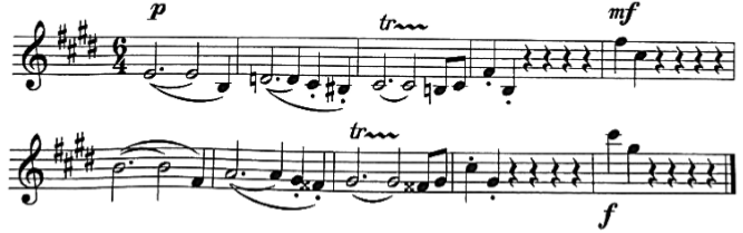 下面谱例出自里姆斯基-科萨科夫《舍赫拉查达》,其中两乐之间的关系是( )。